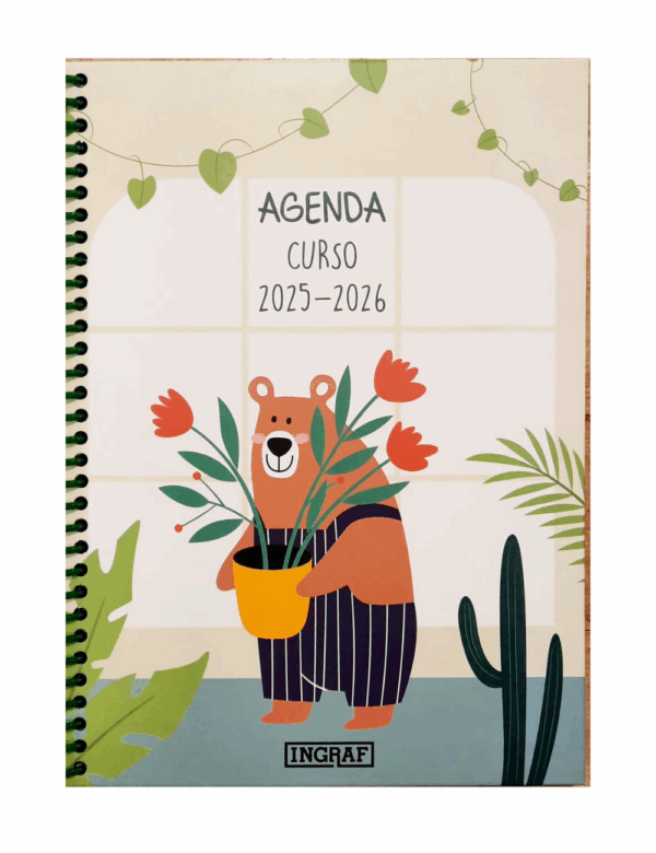 Agenda escolar Oso pardo . Semana/ vista. Curso 25-26. Din A5.Tapa cartón.