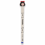 El cuerpo del bolígrafo tiene un tacto muy suave e incluye una goma de borrar en el extremo opuesto al del personaje que permite borrar de forma rápida y sencilla lo ya escrito.
