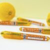 La felicidad está hecha de pequeños momentos, que no se te escape ninguno con este original bolígrafo solidario súper cítrico, en tonos amarillos y plata.