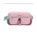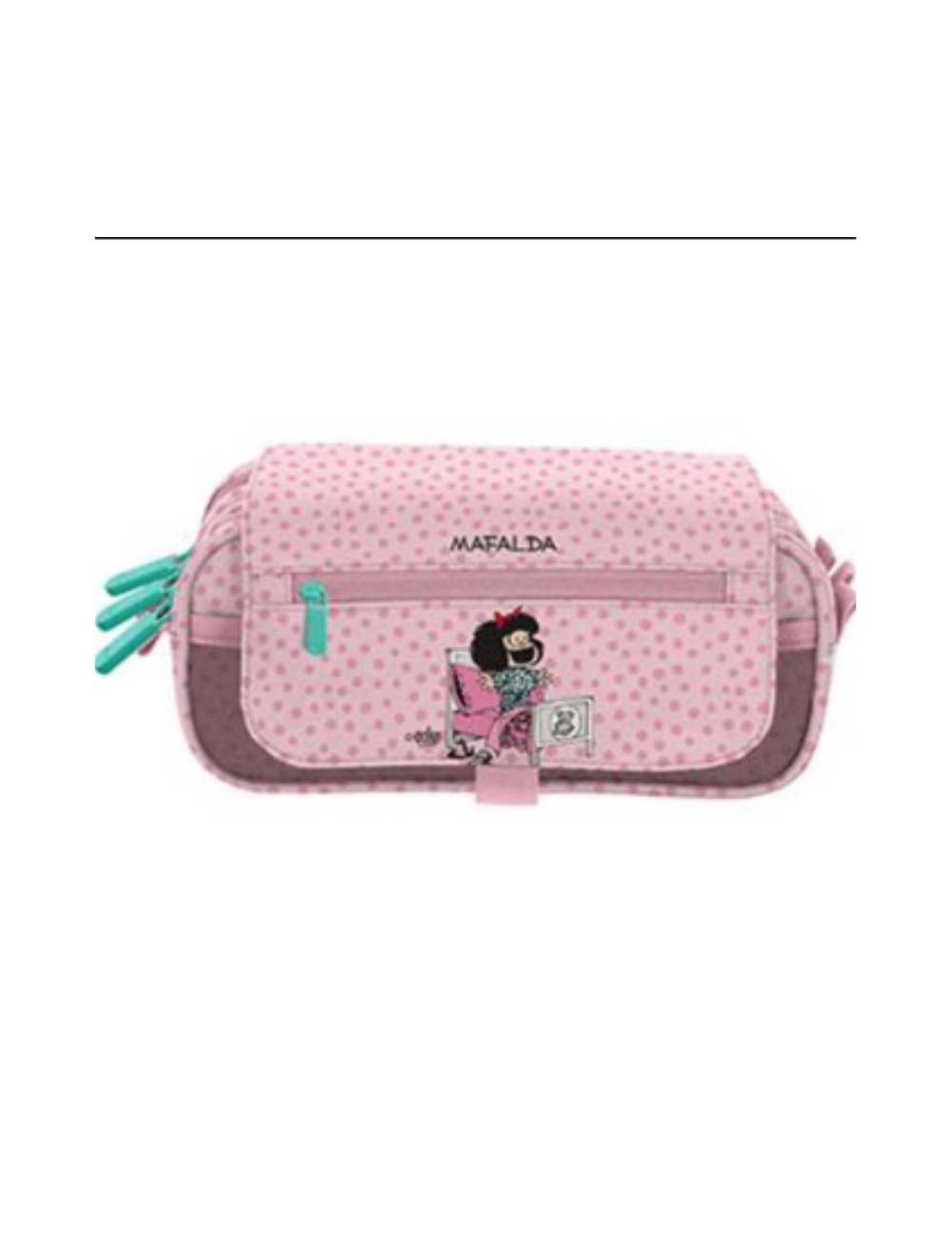 Estuche portatodo triple de la colección Mafalda de Grafoplás de la serie Morning. Este estuche multifuncional tiene una alta capacidad gracias a sus tres compartimentos principales con cierre de cremalleras.