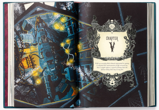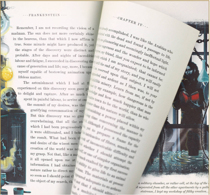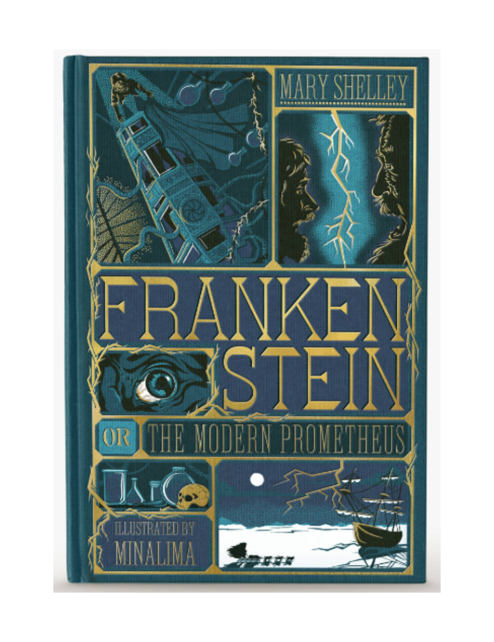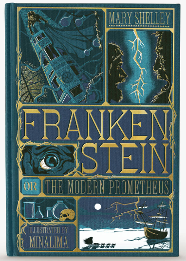 Sumérgete en el oscuro mundo de «Frankenstein o el moderno Prometeo» con nuestra adaptación profusamente ilustrada del clásico de terror de Mary Shelley.
