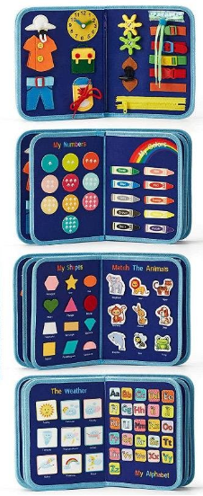 Una carpeta hecha en fieltro, en cada página te encontrarás nuevos retos para los peques de la casa.