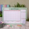 Planificador mensual en tamaño A3, bien grandote para que tengas espacio para que todo tenga su lugar y nada se olvide. Así, a vista de pájaro, tendrás una perspectiva más ordenada y simplificada de las tareas del mes.