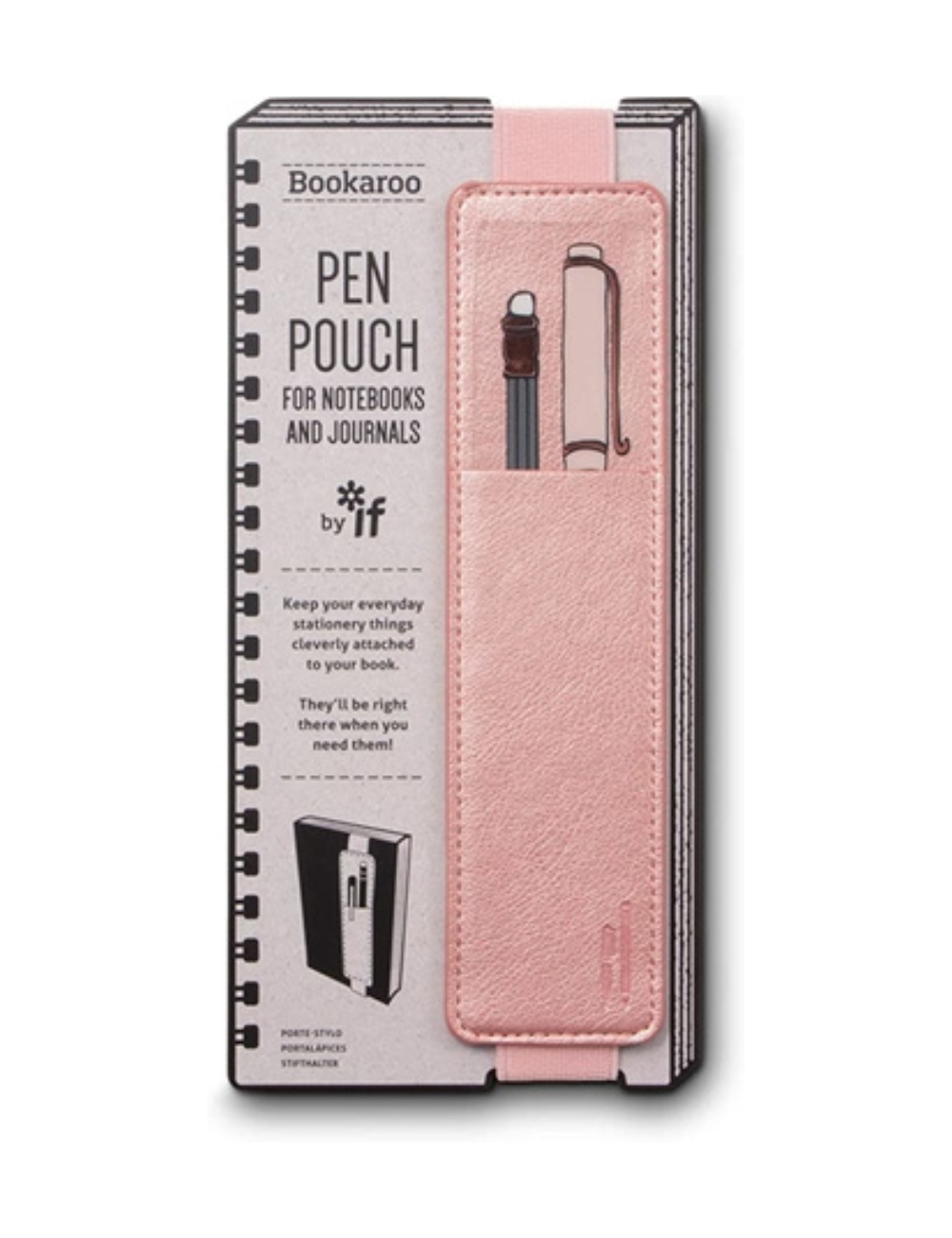 Se coloca en tu libreta, agenda o libro con una goma muy resistente que te permite tener siempre recogidos y a mano tus útiles de escritura.