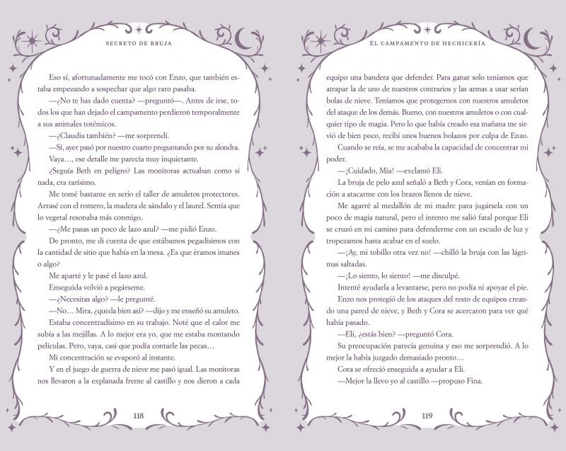 Mía ha empezado el instituto como es normal: nuevas amigas, muchos deberes, amores a primera vista? Ah, sí, y ha descubierto que es bruja. Lo típico, ¿no? Pero las vacaciones de Navidad no van a ser tan normales. Mía, Beth y Zoe van a pasarlas? ¡en el campamento de hechicería! ¿Alguna vez has estado en un campamento? Bueno, pues los de hechicería no tienen nada que ver. Se hacen en un castillo con salones enormes, las habitaciones son como las de un hotel y aprendes todo tipo de magia, desde leer runas hasta hacer pociones. Y, lo mejor, ¡puedes conocer a otras brujas y brujos! Pero el peligro no descansa ni en vacaciones? Aunque no se lo cuentes a nadie. Es un?… SECRETO DE BRUJA.
