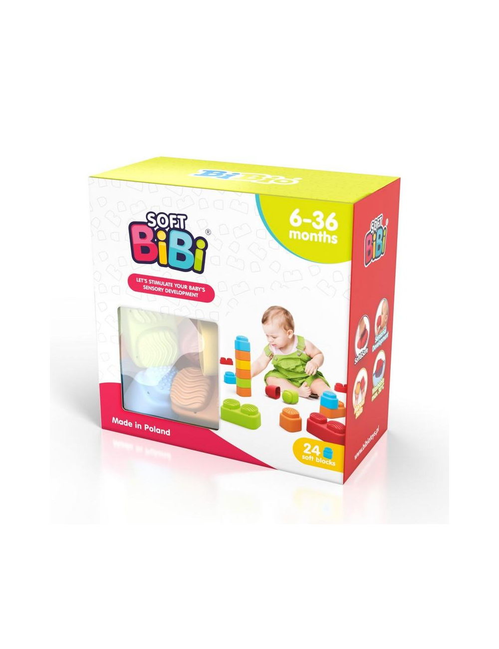 Los bloques sensoriales SOFT BIBI invitan a explorar texturas fascinantes. Están hechos de un plástico suave y agradable al tacto. Su superficie tiene diferentes relieves (ondas o granitos) que estimulan el sentido del tacto y desarrollan la motricidad fina.