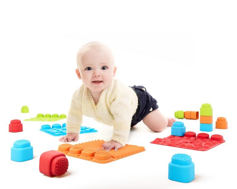 Están hechas de un plástico suave y agradable al tacto. Sus superficies tienen distintas relieves, rayas suaves, ondas lisas y formas llamativas, que estimulan los receptores sensoriales y favorecen el desarrollo de la integración sensorial.